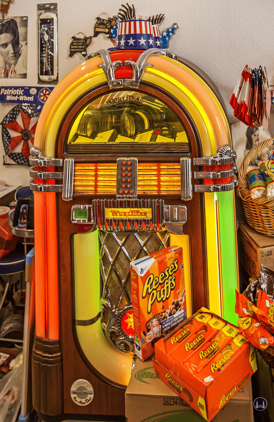 | Und, klar, eine Jukebox darf nicht fehlen - übrigens auch verkäuflich...