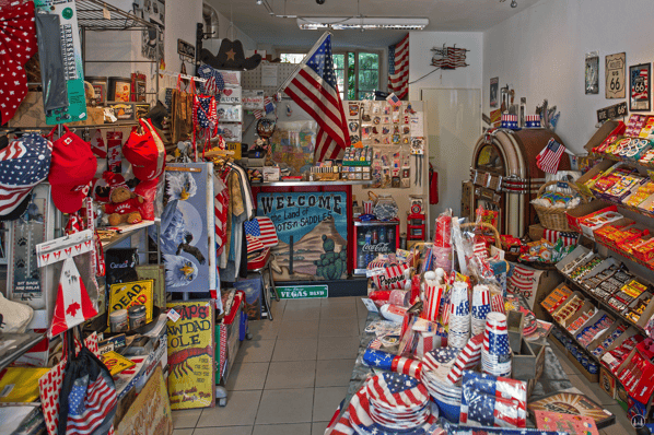 Egal, ob typisch amerikanische Schokolade, Softdrinks, Textilien, Flaggen, Autokennzeichen, Emaille-Schilder, CD´s oder Figuren des amerikanischen Wappentiers fürs heimatliche Regal…