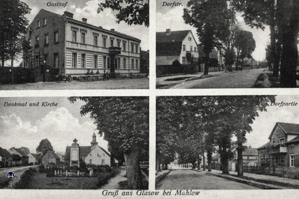 Nicht nur für die prosperierende Firma mussten gegen Ende der 1920er Jahre neue Räume gefunden werden. Auch Brunos Familie war inzwischen recht groß geworden, zumal neben den Kindern zum Haushalt auch Martha und ihre Tochter Lilly gehörten. 1932 konnte, so die Familienunterlagen, in der südlich von Lichtenrade gelegenen Gemeinde Glasow (heute ein Ortsteil von Blankenfelde-Mahlow) eine gerade fertiggestellte Villa samt 2400 Quadratmeter großem Grundstück in der damaligen Blücherstraße 7–9 (heute Ernst-Thälmann-Straße 9) erworben werden. Doch es gibt, so zeigt ein Blick in die offiziellen Unterlagen des Gemeindearchivs, eine Abweichung gegenüber der Familienchronik...
