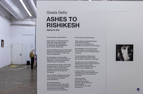 Der Titel der Ausstellung „Ashes to Rishikesh“ bezieht sich auf dem letzten Wunsch von Jutta Winkelmann, dass ihre Asche im Ganges verstreut werden möge. Ein Wunsch, der in Wahrheit als ein letztes Geschenk an ihre Zwillingsschwester Gisela gedacht war, damit diese ebenfalls jenes Indien kennenlernen möge, das für sie selbst ein wichtiger Punkt auf ihrem spirituellem Weg gewesen war. In gleicher Weise ist auch die Fotoausstellung von Gisela Gettys als ein Geschenk an den Betrachter zu verstehen, sich mit dem in unserer Kultur oft verdrängten Thema „Tod“ ganz bewusst auseinanderzusetzen.